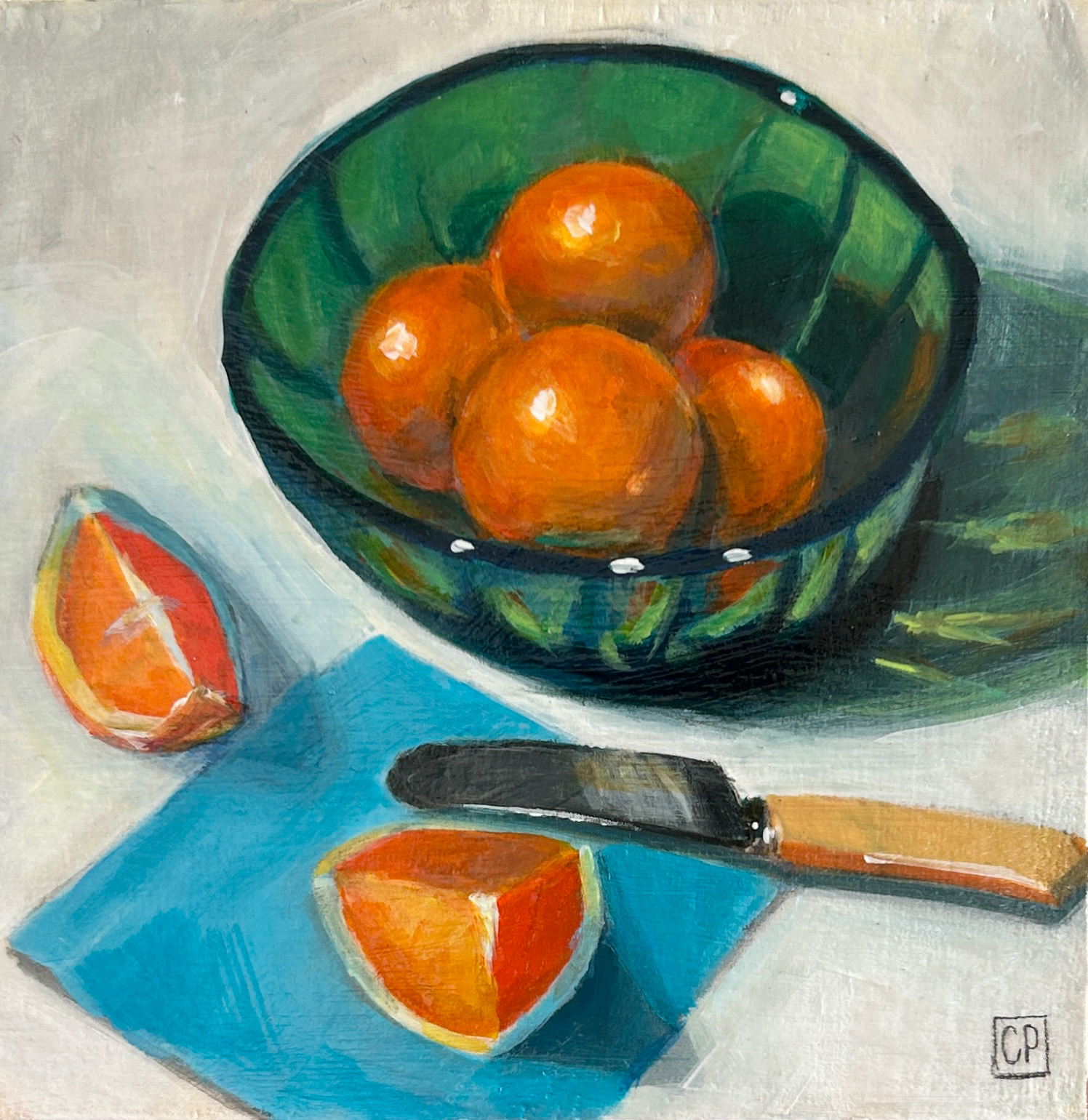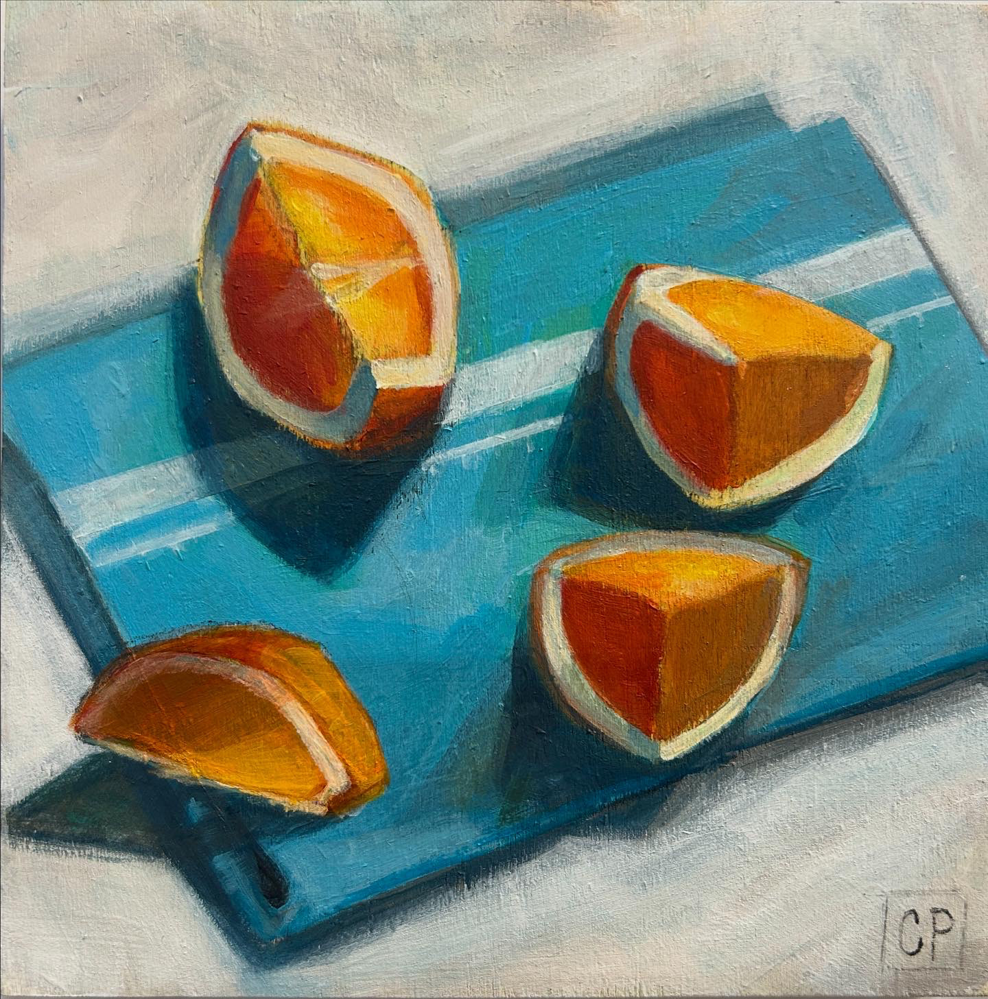 "Cobalt and citrus" | acrylic on panel | 6" x 6"